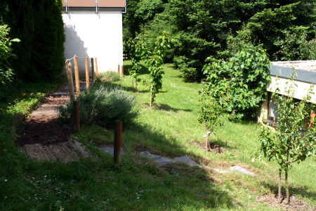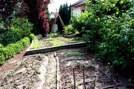 Triebe einer Buchshecke wurden gesteckt und nun beobachtet. Bodenvorbereitungen, Schneiden einer Zierkirsche und Ausbessern unseres Barfußpfades waren bislang unsere weiteren Tätigkeiten. Doch wir haben ja erst begonnen.
