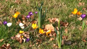 Spieleschrank ordneten die Schüler innerhalb von 20 Kreisen Krokus- und Narzissenzwiebeln an. Über 400 Zwiebeln treiben nun aus und können von aufmerksamen Passanten nicht übersehen werden. Vielleicht erreichen wir damit auch einige Hundebesitzer, die nun ihre Vierbeiner an die kurze Leine nehmen und die Wiese als Blumenwiese und Teil des Schulgeländes akzeptieren werden.