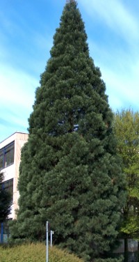 Unser Schulgarten liegt zwischen zwei Mammutbäumen, die die Schule schon längst überragen. Sie wurden ca. 1970 angeplanzt. Der Bergmammutbaum (lat. Sequoiadendron giganteum) ist in der Sierra Nevada in Kalifornien heimisch. Er kann über 80m hoch werden und einen Stammdurchmesser von über 12m erreichen. Die ältesten Exemplare sind über 2700 Jahre alt. Fossilienfunde weisen darauf hin, daß erste Vertreter dieser Art bereits vor 50 Millionen Jahren im Westen der heutigen USA heimisch waren. |