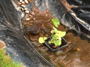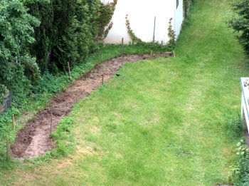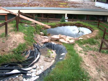 | Am Samstag, den 23.04. fand sich S. ein und wir konnten bei noch schönstem Wetter so richtig loslegen. Teichfolie, Folie für den Wasserzulauf und einen Teil des umgebenden Zauns konstruierten wir, bis der Regen und auch Müdigkeit uns abends gegen 17 Uhr aufhören ließ. | |||||||||||||||||||||||||